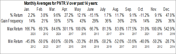 To download PNTR.V seasonal chart data, please log in or Subscribe.