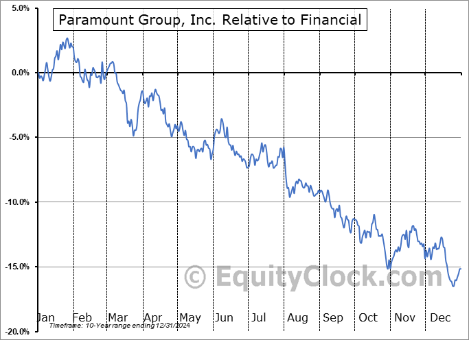 Analysis of the Paramount Group, Inc. (NYSE:PGRE) seasonal charts above shows that a Buy Date of October 25 and a Sell Date of January 25 has resulted in a geometric average return of 0.07% above the benchmark rate of the S&P 500 Total Return Index over the past 9 years. This seasonal timeframe has shown positive results compared to the benchmark in 6 of those periods. This is a good rate of success and the return strongly outperforms the relative buy-and-hold performance of the stock over the past 9 years by an average of 22.22% per year.