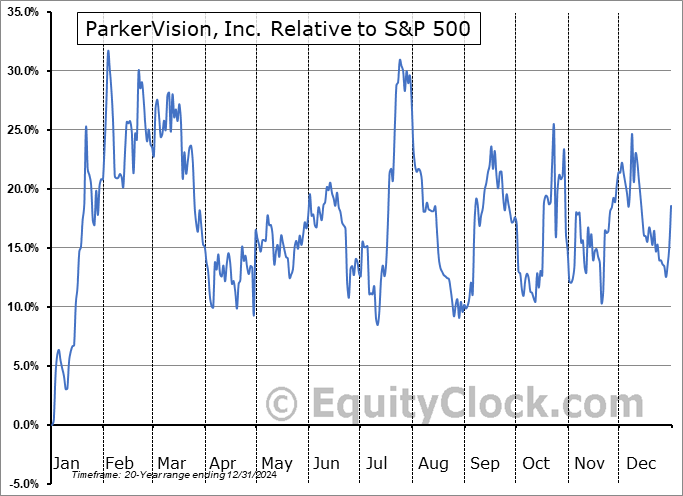 Analysis of the ParkerVision, Inc. (OTCMKT:PRKR) seasonal charts above shows that a Buy Date of December 20 and a Sell Date of March 10 has resulted in a geometric average return of 18.68% above the benchmark rate of the S&P 500 Total Return Index over the past 20 years. This seasonal timeframe has shown positive results compared to the benchmark in 14 of those periods. This is a good rate of success and the return strongly outperforms the relative buy-and-hold performance of the stock over the past 20 years by an average of 45.98% per year.
