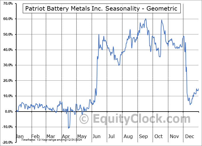 Patriot Battery Metals Inc. (OTCMKT:PMETF) Seasonal Chart