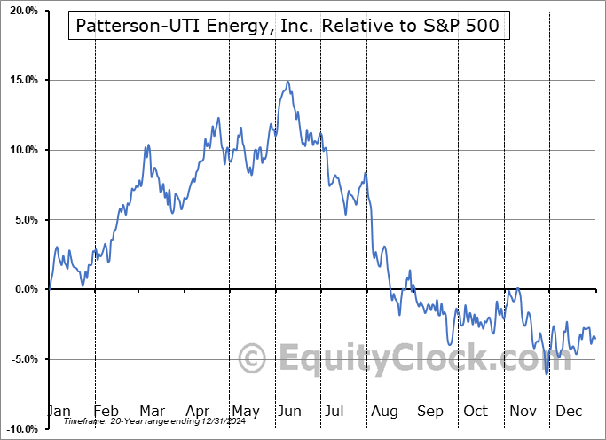 Analysis of the Patterson-UTI Energy, Inc. (NASD:PTEN) seasonal charts above shows that a Buy Date of March 23 and a Sell Date of June 29 has resulted in a geometric average return of 3.39% above the benchmark rate of the S&P 500 Total Return Index over the past 20 years. This seasonal timeframe has shown positive results compared to the benchmark in 14 of those periods. This is a good rate of success and the return strongly outperforms the relative buy-and-hold performance of the stock over the past 20 years by an average of 14.92% per year.