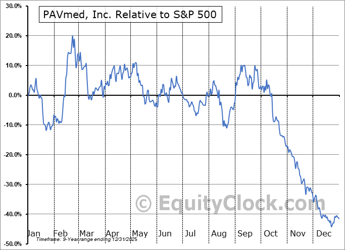 Analysis of the PAVmed, Inc. (NASD:PAVM) seasonal charts above shows that a Buy Date of February 9 and a Sell Date of May 6 has resulted in a geometric average return of 14.91% above the benchmark rate of the S&P 500 Total Return Index over the past 9 years. This seasonal timeframe has shown positive results compared to the benchmark in 7 of those periods. This is a good rate of success and the return strongly outperforms the relative buy-and-hold performance of the stock over the past 9 years by an average of 71.06% per year.