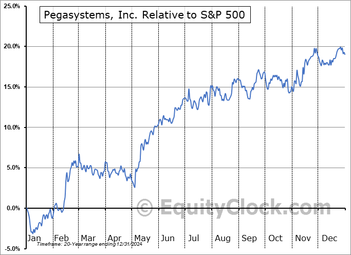Analysis of the Pegasystems, Inc. (NASD:PEGA) seasonal charts above shows that a Buy Date of April 28 and a Sell Date of July 26 has resulted in a geometric average return of 6.63% above the benchmark rate of the S&P 500 Total Return Index over the past 20 years. This seasonal timeframe has shown positive results compared to the benchmark in 16 of those periods. This is a very good rate of success, but the return underperforms the relative buy-and-hold performance of the stock over the past 20 years by an average of 0.56% per year.