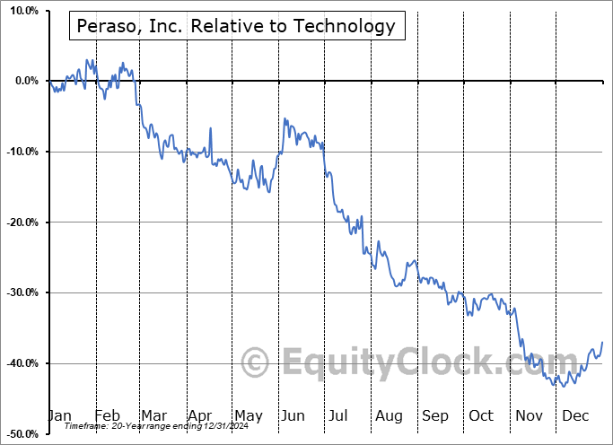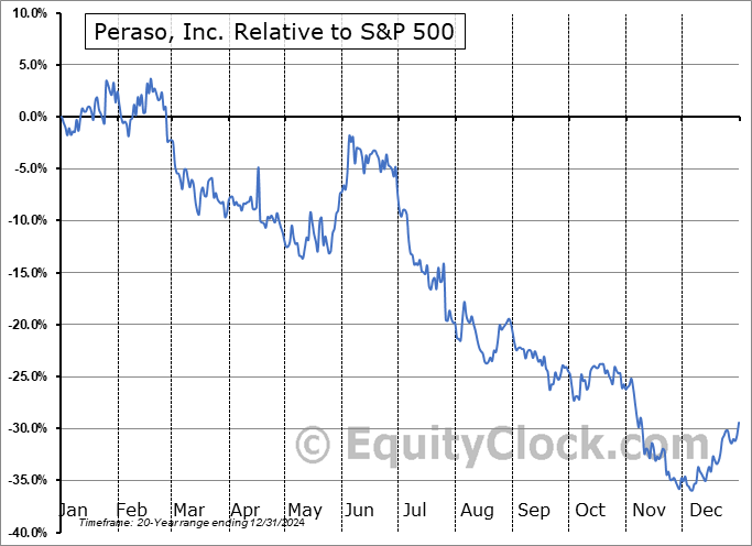 Analysis of the Peraso, Inc. (NASD:PRSO) seasonal charts above shows that a Buy Date of March 15 and a Sell Date of June 17 has resulted in a geometric average return of 0.29% above the benchmark rate of the S&P 500 Total Return Index over the past 20 years. This seasonal timeframe has shown positive results compared to the benchmark in 10 of those periods. This is a poor rate of success and the return strongly outperforms the relative buy-and-hold performance of the stock over the past 20 years by an average of 100.29% per year.