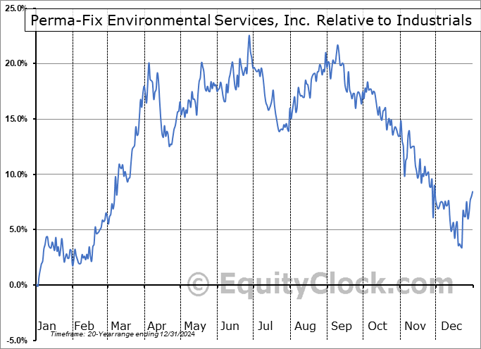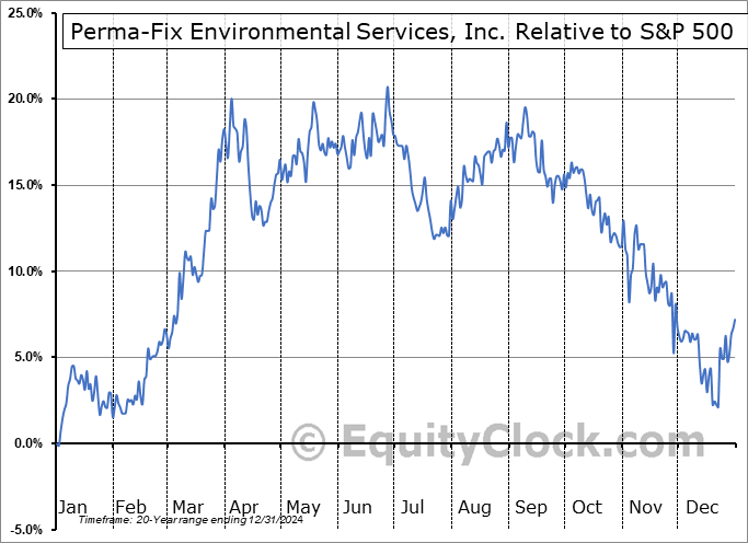 Analysis of the Perma-Fix Environmental Services, Inc. (NASD:PESI) seasonal charts above shows that a Buy Date of December 19 and a Sell Date of March 10 has resulted in a geometric average return of 9.54% above the benchmark rate of the S&P 500 Total Return Index over the past 20 years. This seasonal timeframe has shown positive results compared to the benchmark in 15 of those periods. This is a good rate of success and the return strongly outperforms the relative buy-and-hold performance of the stock over the past 20 years by an average of 17.6% per year.