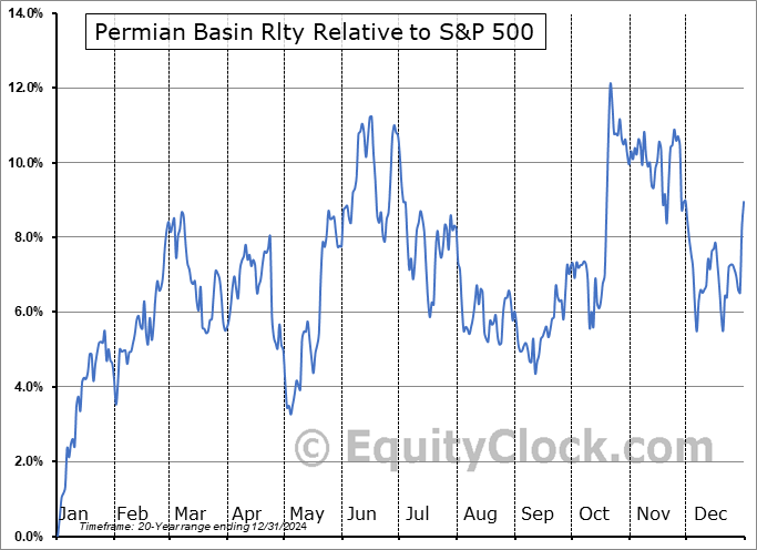 Analysis of the Permian Basin Rlty (NYSE:PBT) seasonal charts above shows that a Buy Date of December 29 and a Sell Date of April 9 has resulted in a geometric average return of 6.11% above the benchmark rate of the S&P 500 Total Return Index over the past 20 years. This seasonal timeframe has shown positive results compared to the benchmark in 14 of those periods. This is a good rate of success and the return strongly outperforms the relative buy-and-hold performance of the stock over the past 20 years by an average of 9.97% per year.