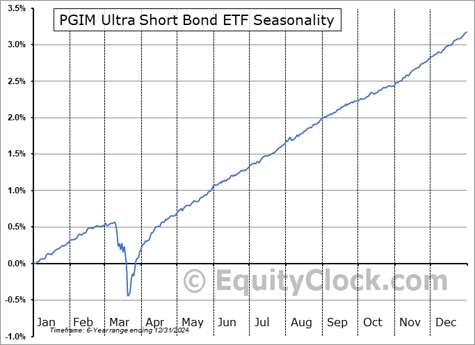 Analysis of the PGIM Ultra Short Bond ETF (AMEX:PULS) seasonal charts above shows that a Buy Date of July 14 and a Sell Date of October 3 has resulted in a geometric average return of 1.63% above the benchmark rate of the S&P 500 Total Return Index over the past 6 years. This seasonal timeframe has shown positive results compared to the benchmark in 4 of those periods. This is a good rate of success and the return strongly outperforms the relative buy-and-hold performance of the stock over the past 6 years by an average of 13.88% per year.