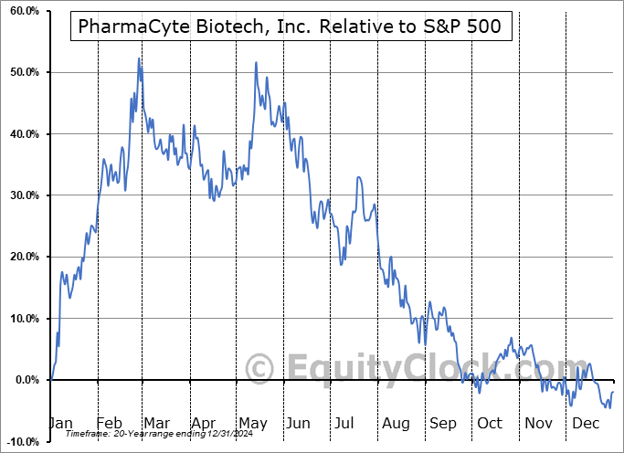 Analysis of the PharmaCyte Biotech, Inc. (NASD:PMCB) seasonal charts above shows that a Buy Date of November 19 and a Sell Date of March 10 has resulted in a geometric average return of 17.3% above the benchmark rate of the S&P 500 Total Return Index over the past 20 years. This seasonal timeframe has shown positive results compared to the benchmark in 14 of those periods. This is a good rate of success and the return strongly outperforms the relative buy-and-hold performance of the stock over the past 20 years by an average of 49.68% per year.