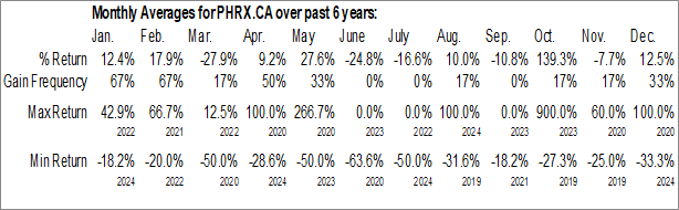 To download PHRX.CA seasonal chart data, please log in or Subscribe.