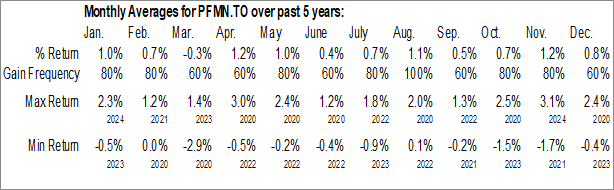 To download PFMN.TO seasonal chart data, please log in or Subscribe.