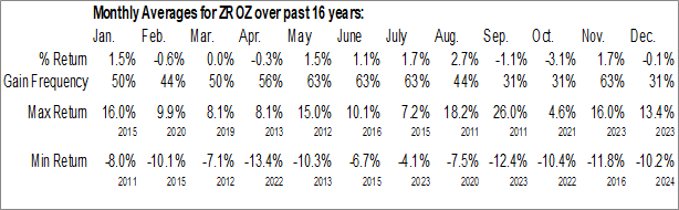 To download ZROZ seasonal chart data, please log in or Subscribe.