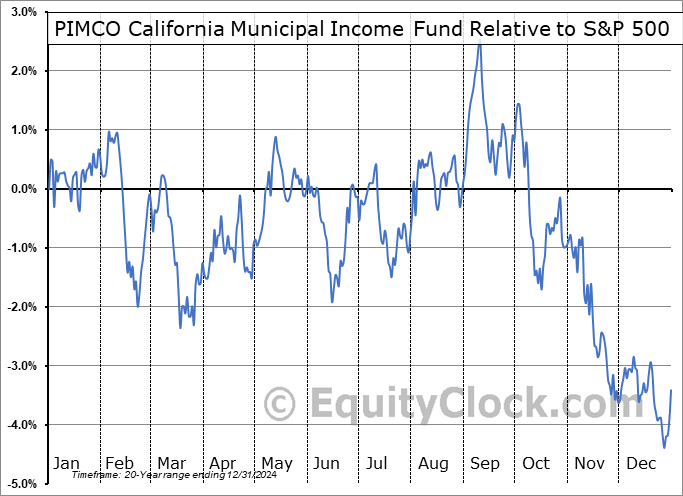 Analysis of the PIMCO California Municipal Income Fund (NYSE:PCQ) seasonal charts above shows that a Buy Date of June 15 and a Sell Date of September 9 has resulted in a geometric average return of 2.93% above the benchmark rate of the S&P 500 Total Return Index over the past 20 years. This seasonal timeframe has shown positive results compared to the benchmark in 15 of those periods. This is a good rate of success and the return strongly outperforms the relative buy-and-hold performance of the stock over the past 20 years by an average of 8.88% per year.