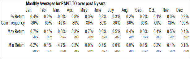 To download PMNT.TO seasonal chart data, please log in or Subscribe.