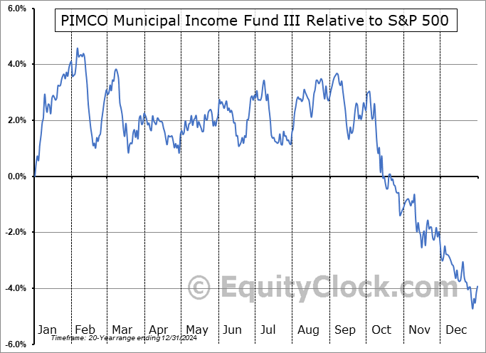 Analysis of the PIMCO Municipal Income Fund III (NYSE:PMX) seasonal charts above shows that a Buy Date of February 22 and a Sell Date of June 2 has resulted in a geometric average return of 0.33% above the benchmark rate of the S&P 500 Total Return Index over the past 20 years. This seasonal timeframe has shown positive results compared to the benchmark in 14 of those periods. This is a good rate of success and the return strongly outperforms the relative buy-and-hold performance of the stock over the past 20 years by an average of 7.05% per year.