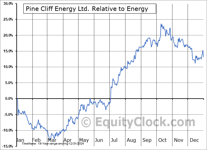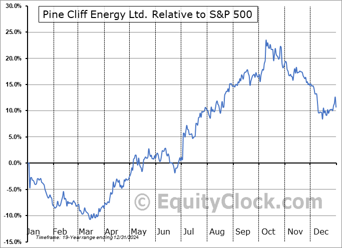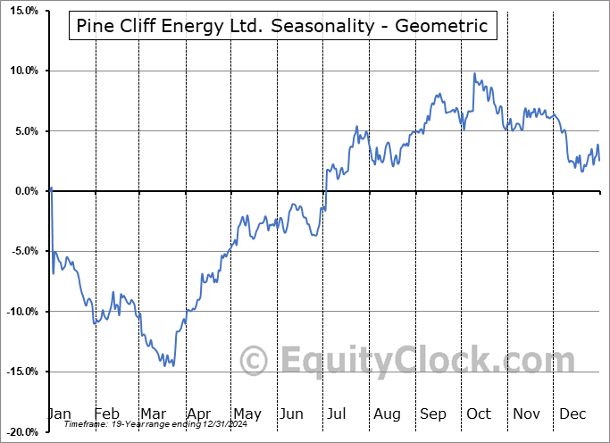 Analysis of the Pine Cliff Energy Ltd. (OTCMKT:PIFYF) seasonal charts above shows that a Buy Date of March 15 and a Sell Date of June 26 has resulted in a geometric average return of 8.32% above the benchmark rate of the S&P 500 Total Return Index over the past 19 years. This seasonal timeframe has shown positive results compared to the benchmark in 17 of those periods. This is a very good rate of success and the return strongly outperforms the relative buy-and-hold performance of the stock over the past 19 years by an average of 15.4% per year.