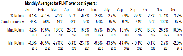 To download PLNT seasonal chart data, please log in or Subscribe.