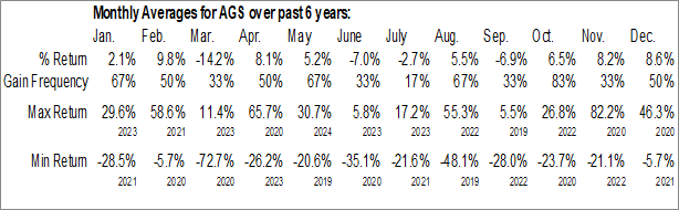 PlayAGS, Inc. (NYSE:AGS) Seasonal Chart