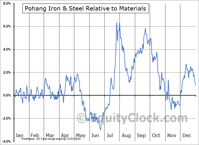 The seasonal timeframe is Inline with the period of seasonal strength for the Materials sector, which runs from November 20 to May 5. The seasonal chart for the broad sector is available via the following link: Materials Sector Seasonal Chart.