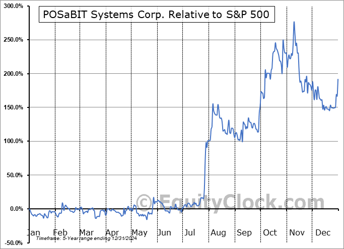 Analysis of the POSaBIT Systems Corp. (CSE:PBIT.CA) seasonal charts above shows that a Buy Date of June 29 and a Sell Date of September 30 has resulted in a geometric average return of 48.58% above the benchmark rate of the S&P 500 Total Return Index over the past 5 years. This seasonal timeframe has shown positive results compared to the benchmark in 4 of those periods. This is a very good rate of success and the return strongly outperforms the relative buy-and-hold performance of the stock over the past 5 years by an average of 50.83% per year.