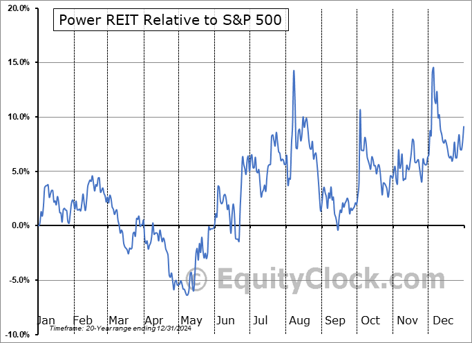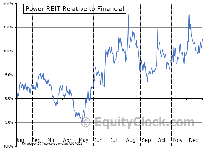Analysis of the Power REIT (AMEX:PW) seasonal charts above shows that a Buy Date of December 7 and a Sell Date of March 1 has resulted in a geometric average return of 2.33% above the benchmark rate of the S&P 500 Total Return Index over the past 20 years. This seasonal timeframe has shown positive results compared to the benchmark in 12 of those periods. This is a fair rate of success and the return strongly outperforms the relative buy-and-hold performance of the stock over the past 20 years by an average of 18.66% per year.
