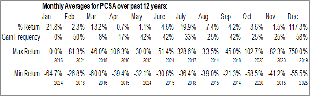 Processa Pharmaceuticals Inc. (NASD:PCSA) Seasonal Chart