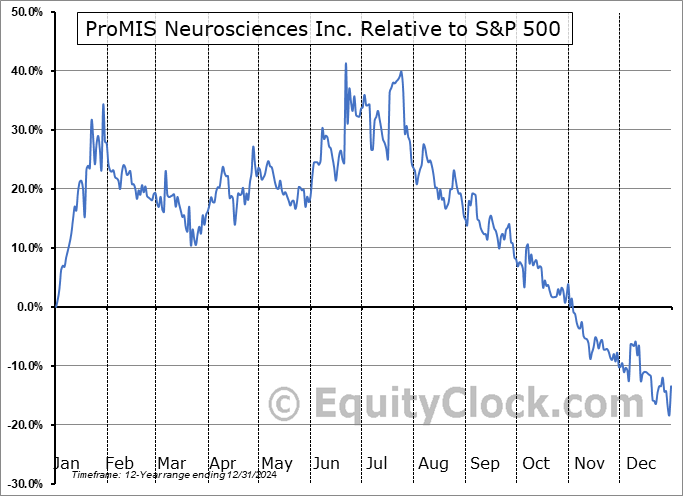 Analysis of the ProMIS Neurosciences Inc. (NASD:PMN) seasonal charts above shows that a Buy Date of March 19 and a Sell Date of July 17 has resulted in a geometric average return of 15.89% above the benchmark rate of the S&P 500 Total Return Index over the past 12 years. This seasonal timeframe has shown positive results compared to the benchmark in 10 of those periods. This is a very good rate of success and the return strongly outperforms the relative buy-and-hold performance of the stock over the past 12 years by an average of 48.95% per year.
