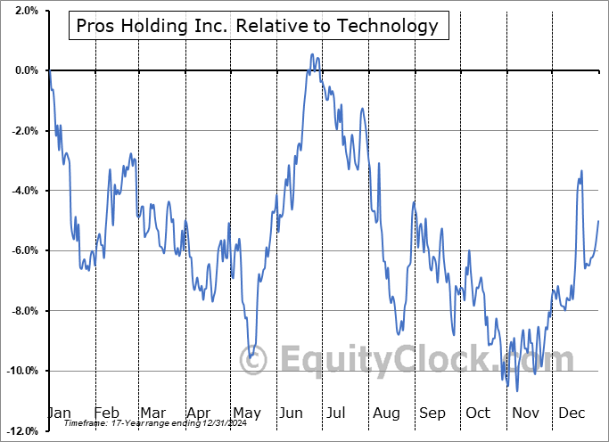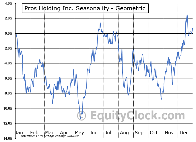 Analysis of the Pros Holding Inc. (NYSE:PRO) seasonal charts above shows that a Buy Date of August 20 and a Sell Date of January 1 has resulted in a geometric average return of 5.78% above the benchmark rate of the S&P 500 Total Return Index over the past 17 years. This seasonal timeframe has shown positive results compared to the benchmark in 14 of those periods. This is a very good rate of success and the return strongly outperforms the relative buy-and-hold performance of the stock over the past 17 years by an average of 13.76% per year.