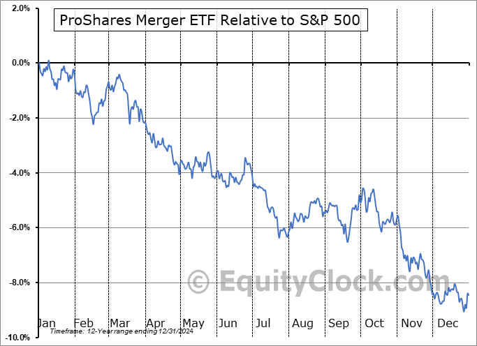 Analysis of the ProShares Merger ETF (AMEX:MRGR) seasonal charts above shows that a Buy Date of July 23 and a Sell Date of October 12 has resulted in a geometric average return of 1.24% above the benchmark rate of the S&P 500 Total Return Index over the past 12 years. This seasonal timeframe has shown positive results compared to the benchmark in 8 of those periods. This is a good rate of success and the return strongly outperforms the relative buy-and-hold performance of the stock over the past 12 years by an average of 12.65% per year.