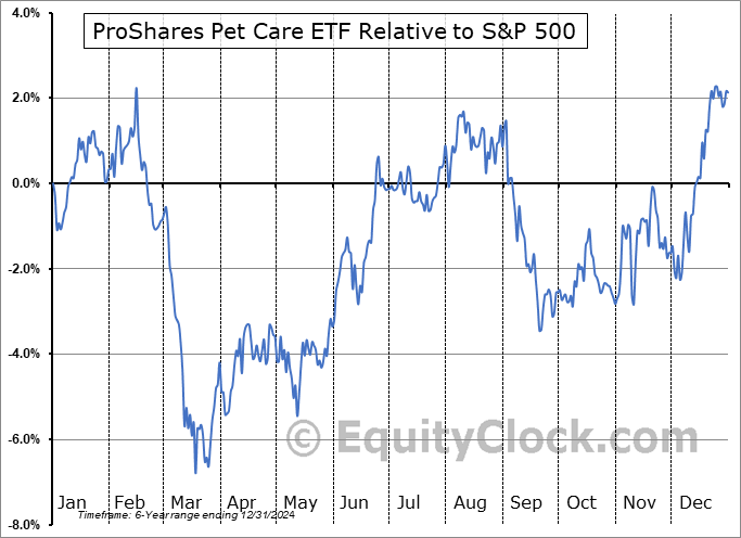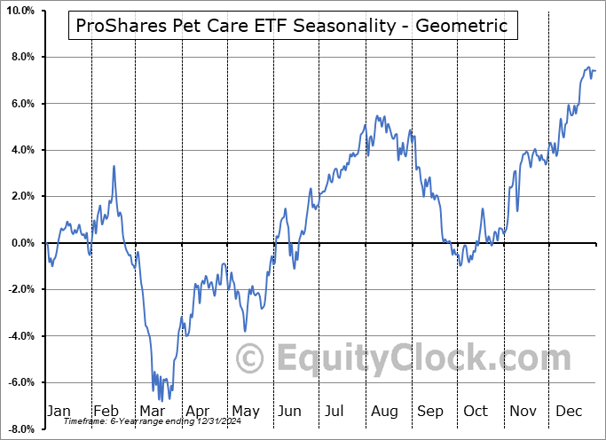 A word of caution: Only 6 years of data is available for shares of PAWZ, perhaps insufficient to create a seasonal profile that accurately gauges the seasonal tendencies influencing the investment. Ideally, while 20 years is preferred, at least 10 years of data is required to perform a seasonal analysis that is considered to be reliable for future seasonal periods.