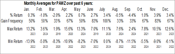 ProShares Pet Care ETF (AMEX:PAWZ) Seasonal Chart