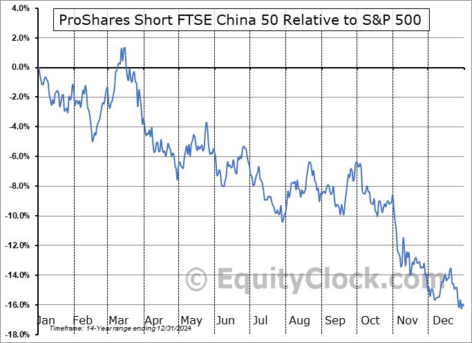 Analysis of the ProShares Short FTSE China 50 (NYSE:YXI) seasonal charts above shows that a Buy Date of July 21 and a Sell Date of October 9 has resulted in a geometric average return of 1.01% above the benchmark rate of the S&P 500 Total Return Index over the past 14 years. This seasonal timeframe has shown positive results compared to the benchmark in 8 of those periods. This is a fair rate of success and the return strongly outperforms the relative buy-and-hold performance of the stock over the past 14 years by an average of 19.25% per year.