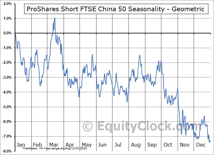 ProShares Short FTSE China 50 (NYSE:YXI) Seasonal Chart