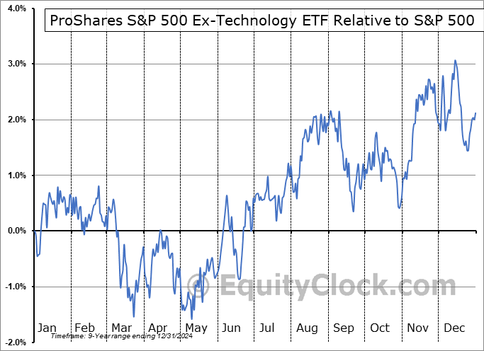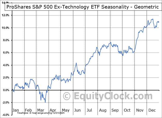 ProShares S&P 500 Ex-Technology ETF (AMEX:SPXT) Seasonal Chart