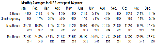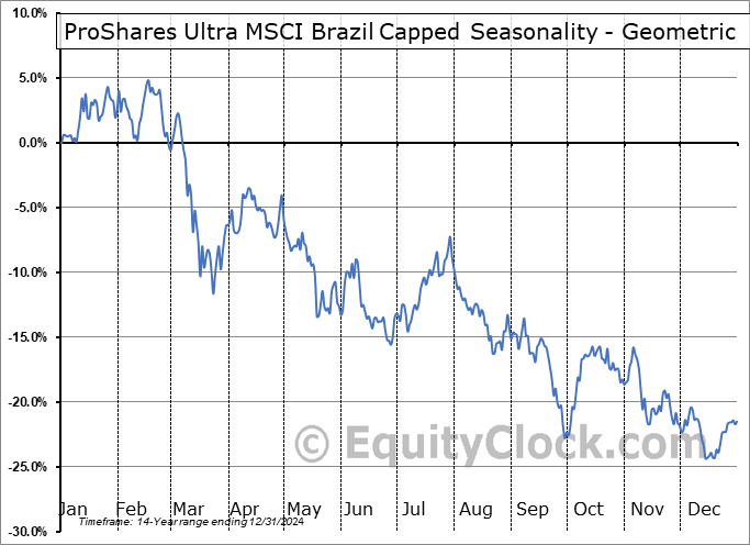 ProShares Ultra MSCI Brazil Capped (NYSE:UBR) Seasonal Chart