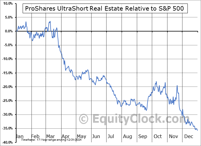 Analysis of the ProShares UltraShort Real Estate (NYSE:SRS) seasonal charts above shows that a Buy Date of July 23 and a Sell Date of October 12 has resulted in a geometric average return of 2.87% above the benchmark rate of the S&P 500 Total Return Index over the past 17 years. This seasonal timeframe has shown positive results compared to the benchmark in 9 of those periods. This is a poor rate of success and the return strongly outperforms the relative buy-and-hold performance of the stock over the past 17 years by an average of 42.28% per year.