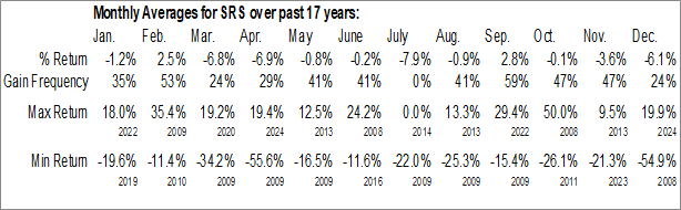 ProShares UltraShort Real Estate (NYSE:SRS) Seasonal Chart