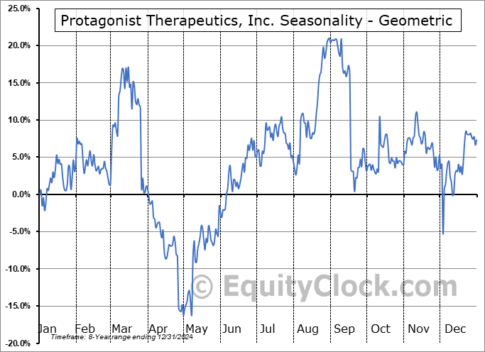 A word of caution: Only 8 years of data is available for shares of PTGX, perhaps insufficient to create a seasonal profile that accurately gauges the seasonal tendencies influencing the investment. Ideally, while 20 years is preferred, at least 10 years of data is required to perform a seasonal analysis that is considered to be reliable for future seasonal periods.
