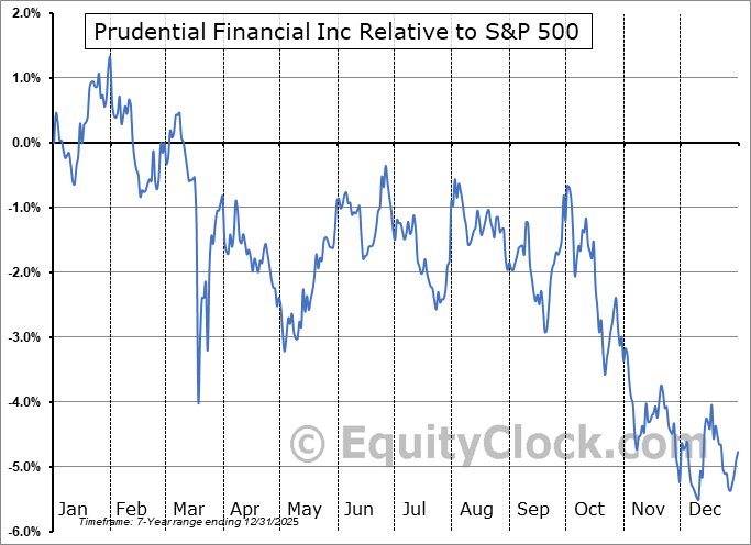 Analysis of the Prudential Financial Inc (NYSE:PRS) seasonal charts above shows that a Buy Date of November 30 and a Sell Date of March 16 has resulted in a geometric average return of 2.63% above the benchmark rate of the S&P 500 Total Return Index over the past 7 years. This seasonal timeframe has shown positive results compared to the benchmark in 5 of those periods. This is a good rate of success and the return strongly outperforms the relative buy-and-hold performance of the stock over the past 7 years by an average of 13.39% per year.