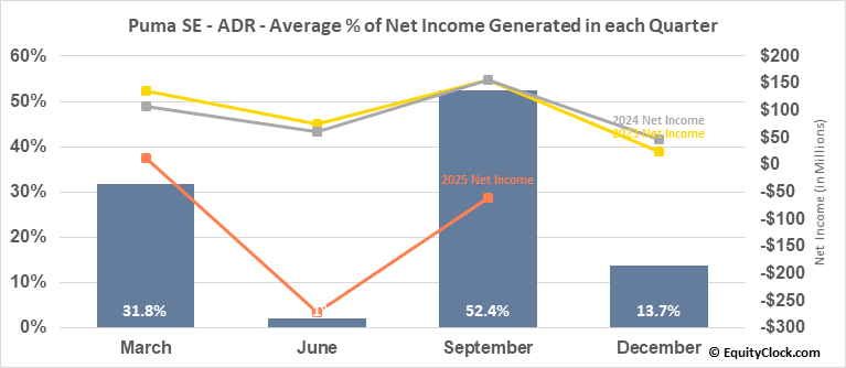 Puma SE – ADR (OTCMKT:PUMSY) Seasonal Chart