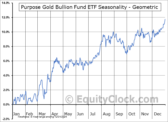 Purpose Gold Bullion Fund ETF (TSE:KILO.TO) Seasonal Chart