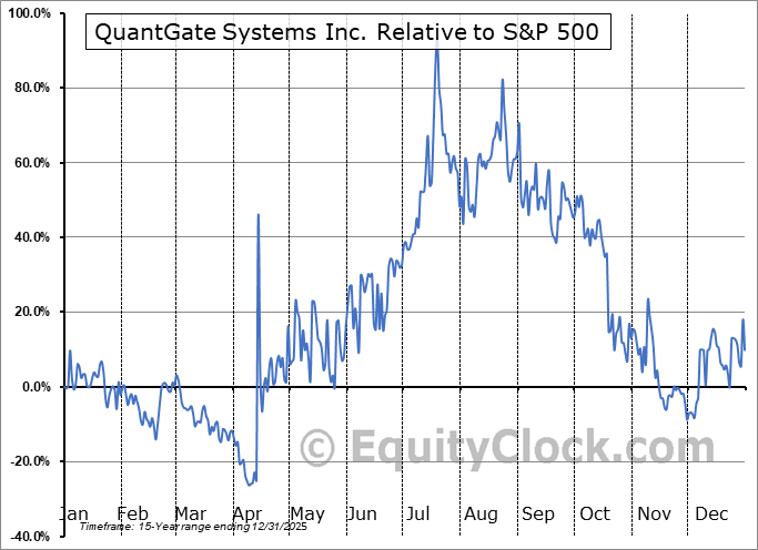 Analysis of the QuantGate Systems Inc. (OTCMKT:QGSI) seasonal charts above shows that a Buy Date of May 30 and a Sell Date of October 9 has resulted in a geometric average return of 32.41% above the benchmark rate of the S&P 500 Total Return Index over the past 15 years. This seasonal timeframe has shown positive results compared to the benchmark in 12 of those periods. This is a very good rate of success and the return strongly outperforms the relative buy-and-hold performance of the stock over the past 15 years by an average of 70.25% per year.