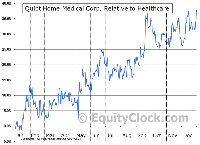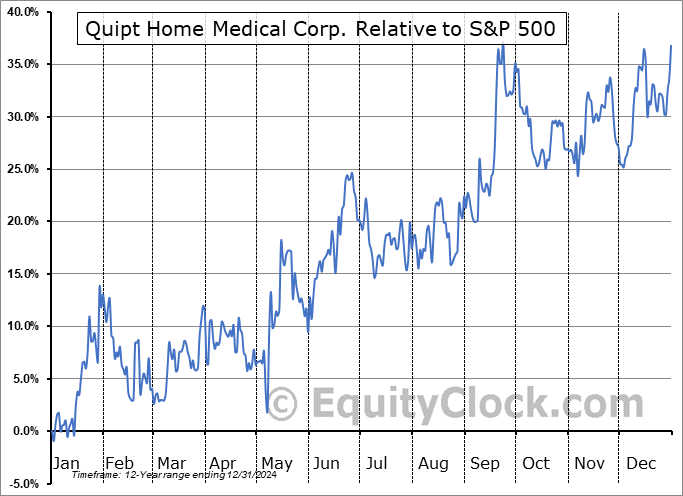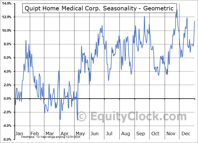 Analysis of the Quipt Home Medical Corp. (TSE:QIPT.TO) seasonal charts above shows that a Buy Date of October 20 and a Sell Date of January 25 has resulted in a geometric average return of 4.14% above the benchmark rate of the S&P 500 Total Return Index over the past 12 years. This seasonal timeframe has shown positive results compared to the benchmark in 9 of those periods. This is a good rate of success and the return strongly outperforms the relative buy-and-hold performance of the stock over the past 12 years by an average of 6.66% per year.