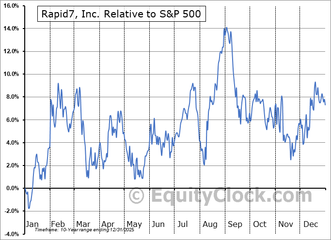 Analysis of the Rapid7, Inc. (NASD:RPD) seasonal charts above shows that a Buy Date of November 19 and a Sell Date of February 8 has resulted in a geometric average return of 6.35% above the benchmark rate of the S&P 500 Total Return Index over the past 10 years. This seasonal timeframe has shown positive results compared to the benchmark in 7 of those periods. This is a good rate of success and the return strongly outperforms the relative buy-and-hold performance of the stock over the past 10 years by an average of 18.91% per year.
