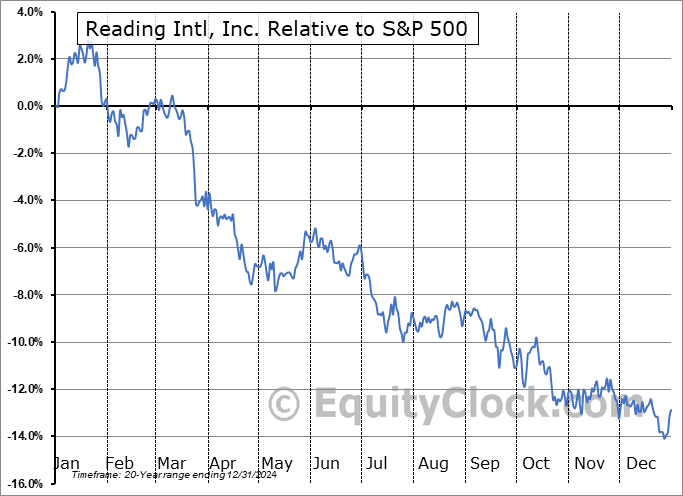 Analysis of the Reading Intl, Inc. (NASD:RDI) seasonal charts above shows that a Buy Date of November 8 and a Sell Date of March 4 has resulted in a geometric average return of 0.29% above the benchmark rate of the S&P 500 Total Return Index over the past 20 years. This seasonal timeframe has shown positive results compared to the benchmark in 11 of those periods. This is a fair rate of success and the return strongly outperforms the relative buy-and-hold performance of the stock over the past 20 years by an average of 17.46% per year.