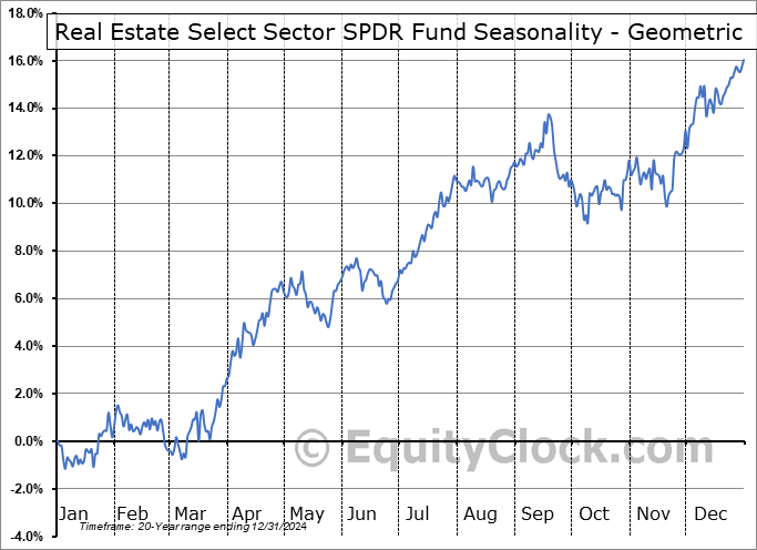 To download XLRE seasonal chart data, please log in or Subscribe.