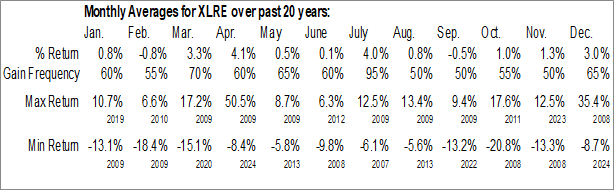 Real Estate Select Sector SPDR Fund (NYSE:XLRE) Seasonal Chart
