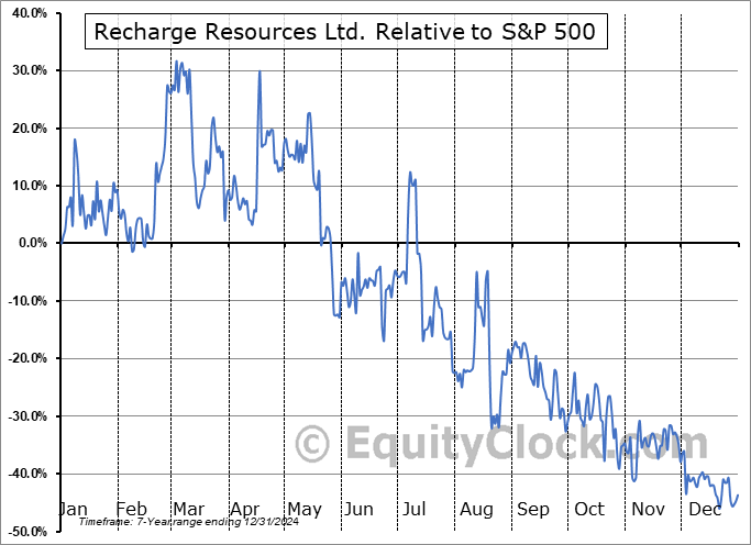 Analysis of the Recharge Resources Ltd. (OTCMKT:RECHF) seasonal charts above shows that a Buy Date of November 20 and a Sell Date of March 19 has resulted in a geometric average return of 92.22% above the benchmark rate of the S&P 500 Total Return Index over the past 7 years. This seasonal timeframe has shown positive results compared to the benchmark in 6 of those periods. This is a very good rate of success and the return strongly outperforms the relative buy-and-hold performance of the stock over the past 7 years by an average of 153.11% per year.