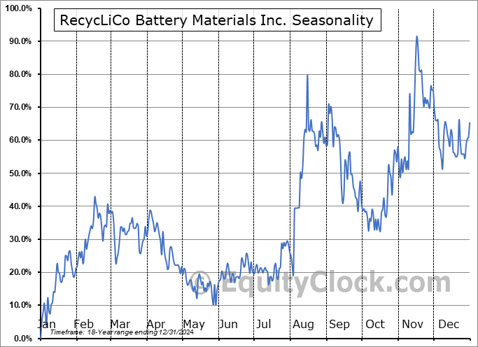 RecycLiCo Battery Materials Inc. (TSXV:AMY.V) Seasonal Chart