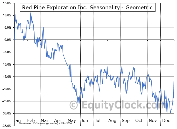 Red Pine Exploration Inc. (TSXV:RPX.V) Seasonal Chart