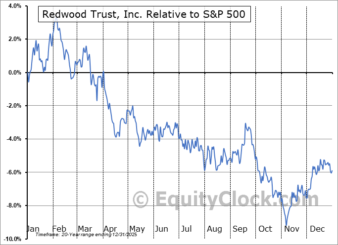 Analysis of the Redwood Trust, Inc. (NYSE:RWT) seasonal charts above shows that a Buy Date of November 7 and a Sell Date of February 3 has resulted in a geometric average return of 5.84% above the benchmark rate of the S&P 500 Total Return Index over the past 20 years. This seasonal timeframe has shown positive results compared to the benchmark in 15 of those periods. This is a good rate of success and the return strongly outperforms the relative buy-and-hold performance of the stock over the past 20 years by an average of 17.28% per year.